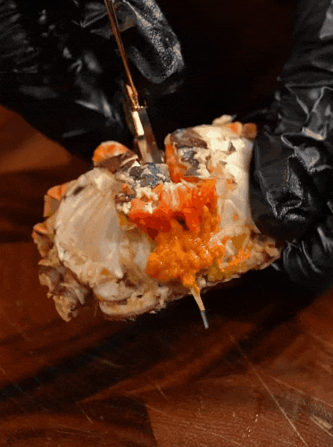 无论是直播还是宣传视频中,都会展示金灿灿的蟹黄和鲜嫩的蟹膏。