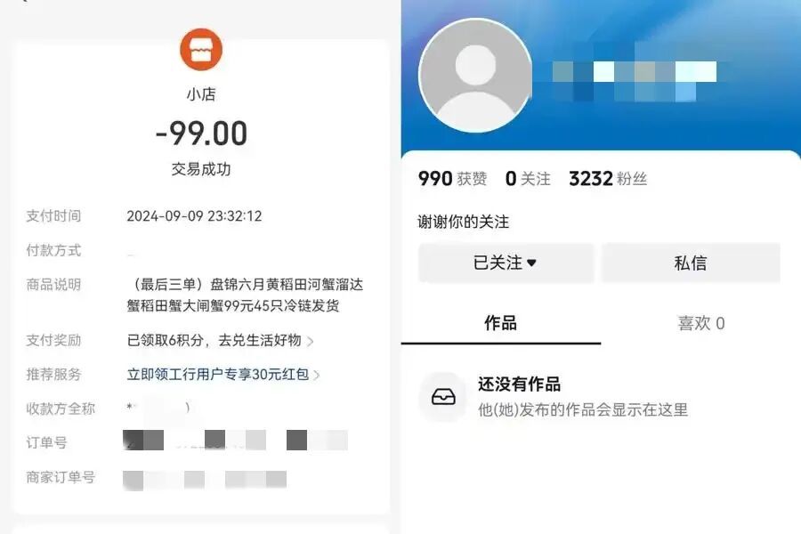 他下单的页面和常规的商城页面很像,但完成支付后,他无法像往常一样在后台搜索到订单,直播的账号也已经变成一片空白,联系所谓客服也毫无回应,他才意识到上当受骗了。