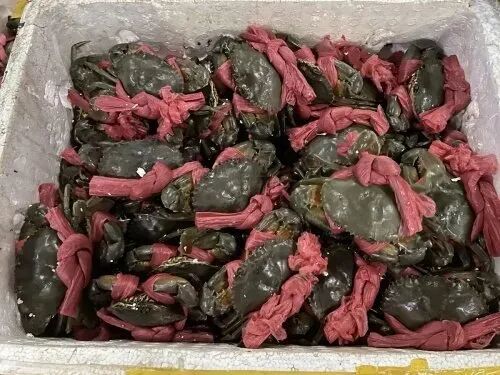 为了增重,许多商家还用绕圈的手段来捆螃蟹。