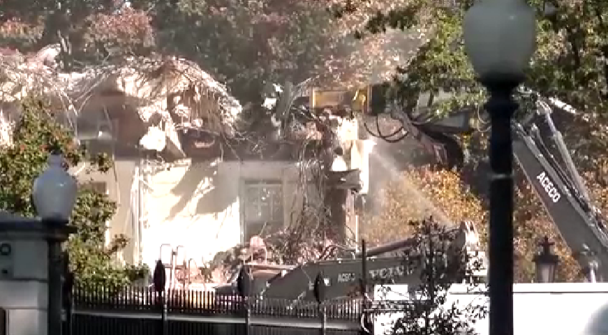 在美国总统特朗普扬言要在白宫新建一座豪华宴会厅后,当地时间10月23日,这座代表了“美国一个世纪历史”的建筑已经被彻底拆除。