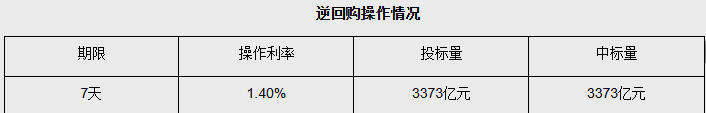 【大河财立方消息】10月27日,央行公告,以固定利率、数量招标方式开展了3373亿元7天期逆回购操作,期限7天,操作利率1.40%,投标量3373亿元,中标量3373亿元。此外今日央行还将开展9000亿元MLF操作。