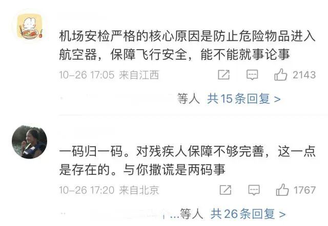 针对安检争议,不少网友呼吁“一码归一码”。机场安检严格的核心原因是防止危险物品进入航空器,保障飞行安全,这与保障特殊旅客的出行体验并不冲突。