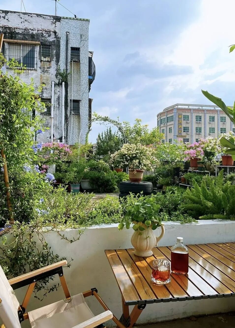 孙兰在天台上精心布置的花园。(图_受访者供图)