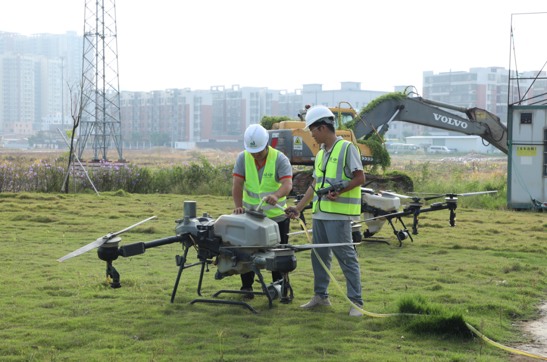 在江门市下属辖区开平市,工作人员正准备使用无人机喷洒药物进行消杀。(图_“网信江门”公众号)