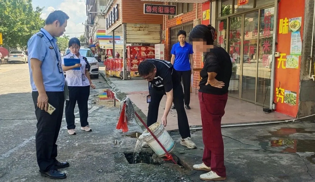 2025年9月,江门市下属辖区开平市,多部门联合开展了基孔肯雅热防控专项监督检查行动。图为专项执法检查组在督促商户倾倒积水。(图_开平广播电视台)