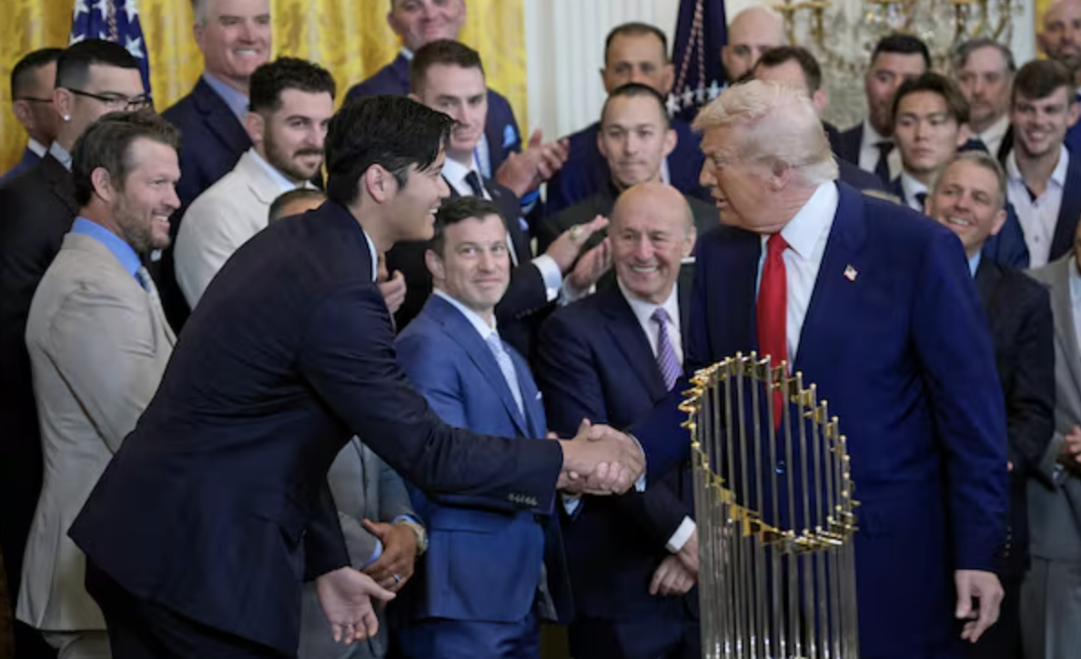 在10月21日白宫为2025年大学棒球冠军举行的祝贺活动中,特朗普虽表示 “太忙了,没法经常看棒球”,但仍提到17日举行的国家联盟冠军赛(MLB 世界系列赛前的季后赛):“看到赛场上的日本选手,我很开心。” 他还盛赞大谷翔平:“他是我见过的最优秀的投手之一,也是最优秀的击球手之一。”