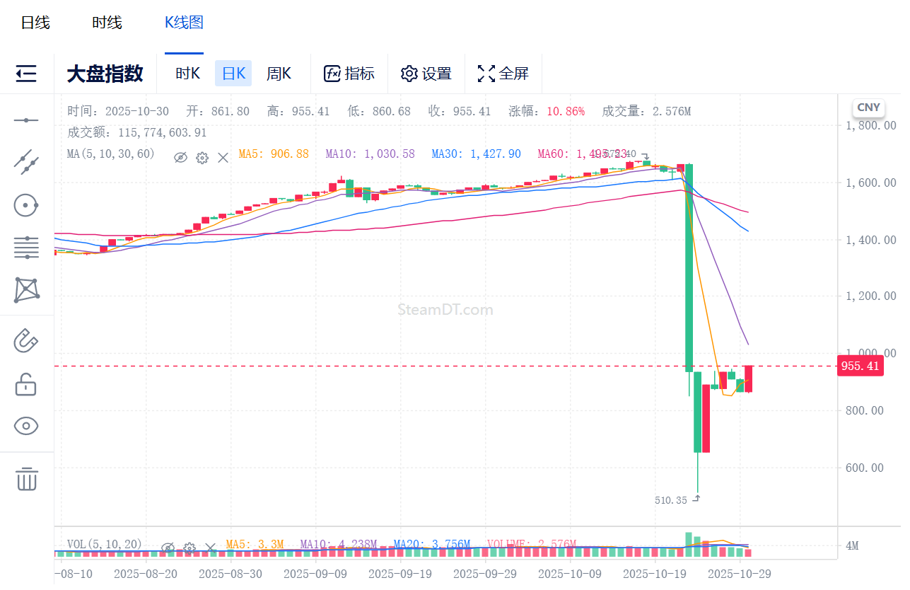 一家数据分析网站提供的CS2道具价格走势图显示,在10月23日更新公告发布后,饰品指数由1700点快速下降至650点,跌幅超过60%。