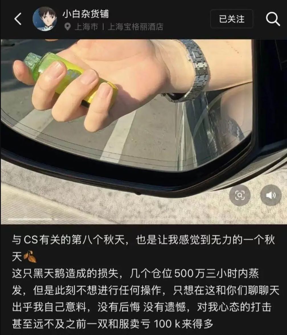 知名玩家“小白杂货铺”称自己资产蒸发了500万元