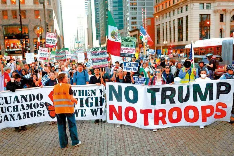◆2025年9月30日,芝加哥民众举行集会,抗议特朗普政府的多项政策。