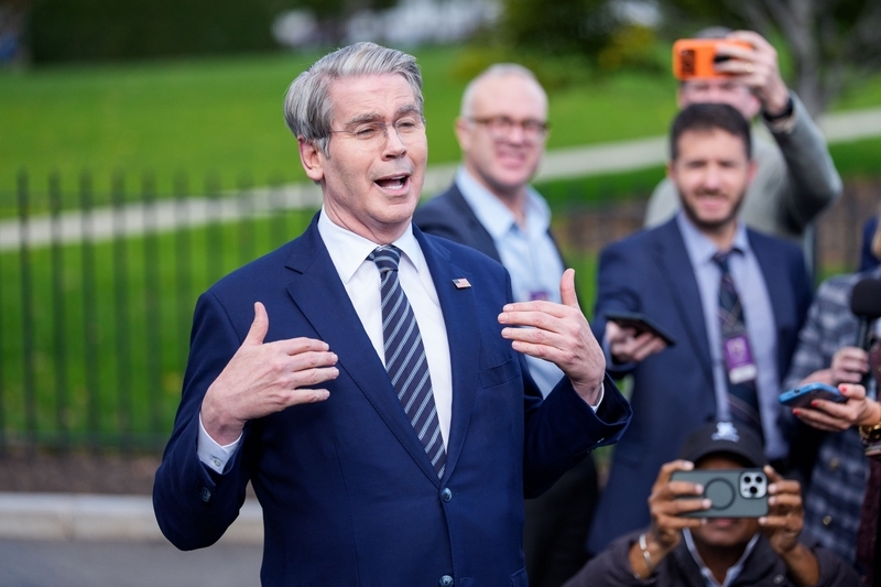 当地时间2025年10月22日,美国财政部长斯科特·贝森特在华盛顿特区白宫西翼外接受记者采访。 IC Photo