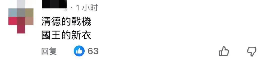 岛内网民对此质疑称“清德的战机,国王的新衣”“这就是真正的嘴上说爱台,实际上做的却是卖台,台湾人醒醒吧!”“终于有隐形战机,钱给了,没看到飞机。”