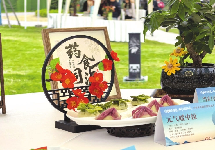 茯苓山药豌豆糕、甘麦舒心茶、姜黄冰激凌……10月23日,在南阳医圣文化园内举办的河南省首届药膳技能大赛活动中,来自全省各地60多支参赛单位选送的特色药膳产品,引得游客纷纷驻足,在品尝试吃的展台前排起了长队。