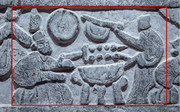 山东临沂五里堡汉画像石《庖厨图》,有一人烧烤,一人持扇扇风