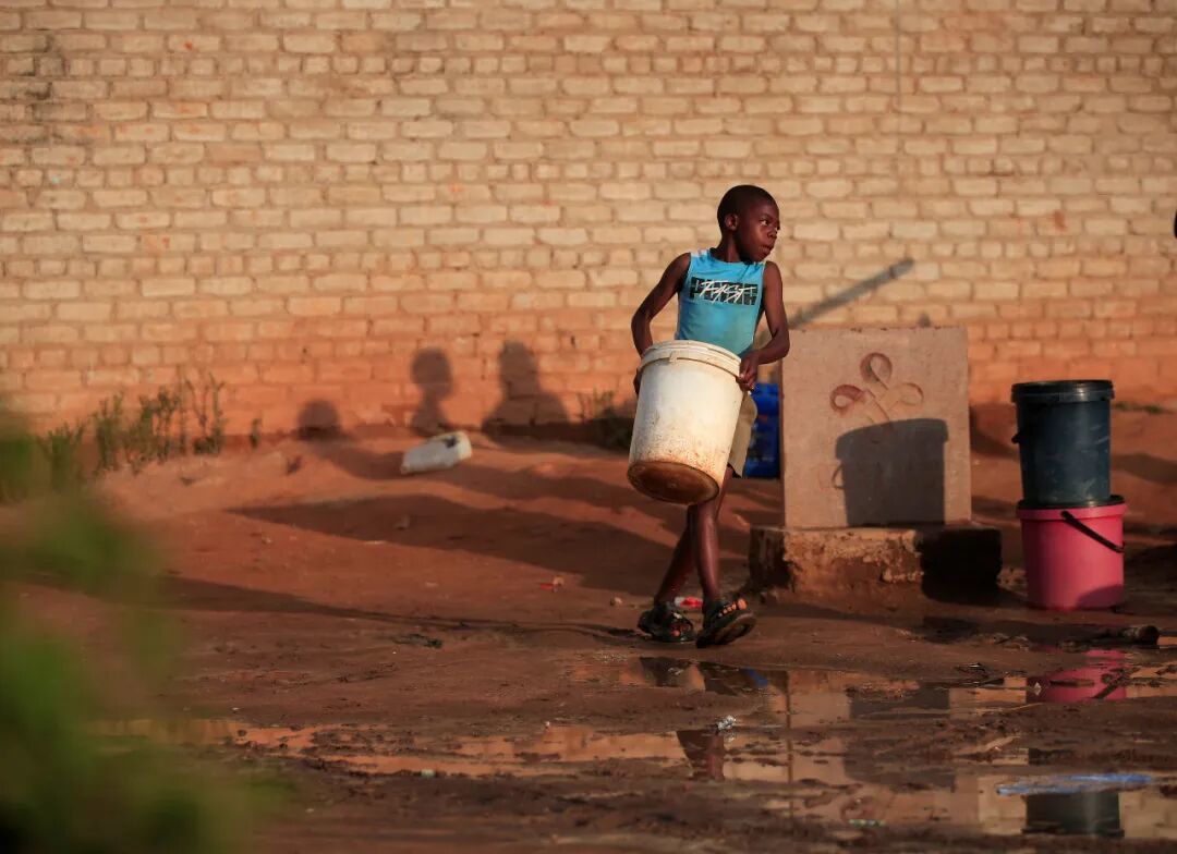 2024年11月7日,津巴布韦马龙德拉,一名儿童前往水井打水。受厄尔尼诺现象影响,南部非洲国家超过6000万人口正面临前所未有的干旱天气。