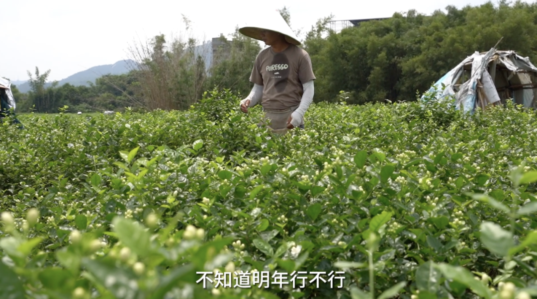 价格不好的话,花农要么选择低价把它给采摘出来,要么只能让它在地里开放。茉莉花一开放,它的香气就会逸散,成为经济价值为零的废花。