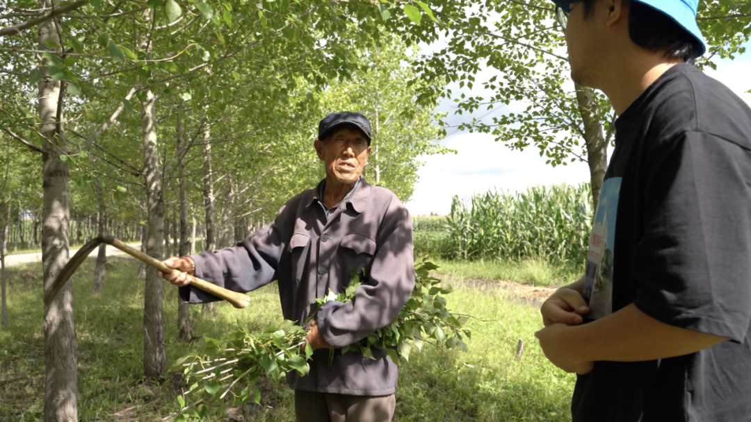 2023年8月,我们第一次踏上了东北大地,在齐齐哈尔的拜泉县遇见了一位80多岁的老人,树林后面就是他家的地。