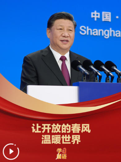 习近平主席曾在进博会上,用三个“不会变”,诠释了中国与世界共享机遇、互利共赢的胸怀与担当,展示了坚定不移的开放决心。进博之约向世界许下中国之诺:中国愿同各国一道,共建开放型世界经济,让开放的春风温暖世界!