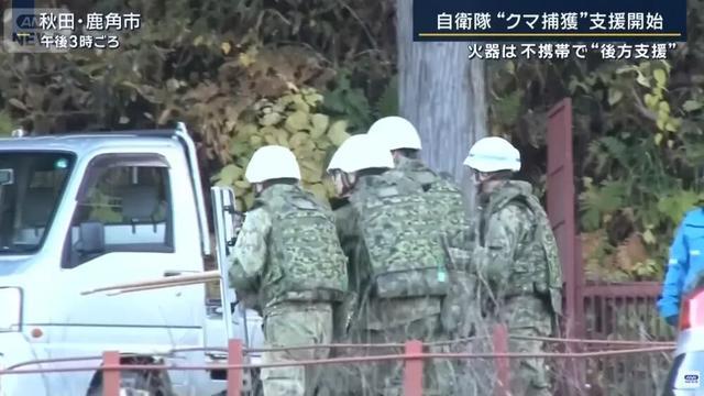 据多家日媒报道,日本自卫队已派人前往熊灾较严重地区协助应对危机。报道称,由于法规等限制,参与本次行动的自卫队员没有携带枪械,而是准备用木制刺刀等装备应对熊的攻击,此举让民众大感不满与无奈。