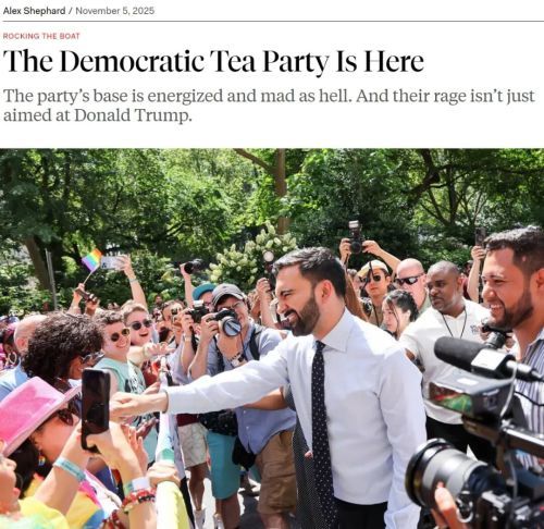 另一方面,美国左右两派的权力人物,都呈现“脱党化”和“超党化”趋势。美国《新共和》杂志,将马姆达尼当选纽约市长,称为“民主党的茶党诞生”,和2016年的特朗普如出一辙。共和党内的茶党运动将温和派逐出了权力核心,催生了特朗普。