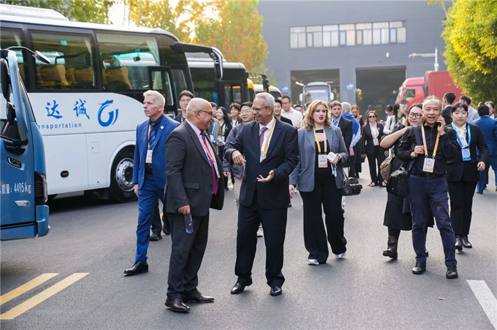 在会场之外,厄瓜多尔、牙买加和格林纳达等多国驻华大使、乌拉圭外交部副部长等重要政企代表、南南合作研修班成员共超300人分批走进宇通,进行参观考察,感受中国制造高质量发展的昂扬之姿。