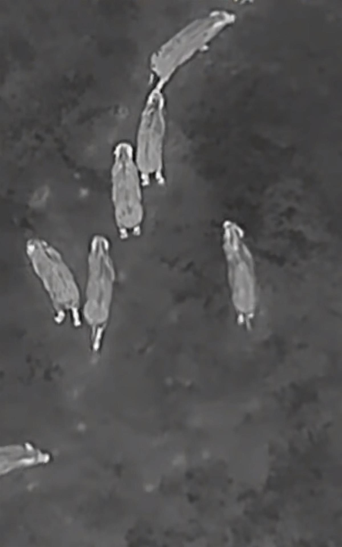 “刚过去的时候,野猪是真的多,很多都是从秦岭跑下来的,一晚上都能看到几十头,成群结队。”陈师傅向记者描述捕猎场景称,“我们一般是夜晚捕猎,两三个人携带两三个小的热成像无人机,飞到四五十米高,晚上温度低,热成像能够清晰地看到野猪的影像,头尖尖的,圆滚滚的,在屏幕上可以很明显地看到这些特征。”