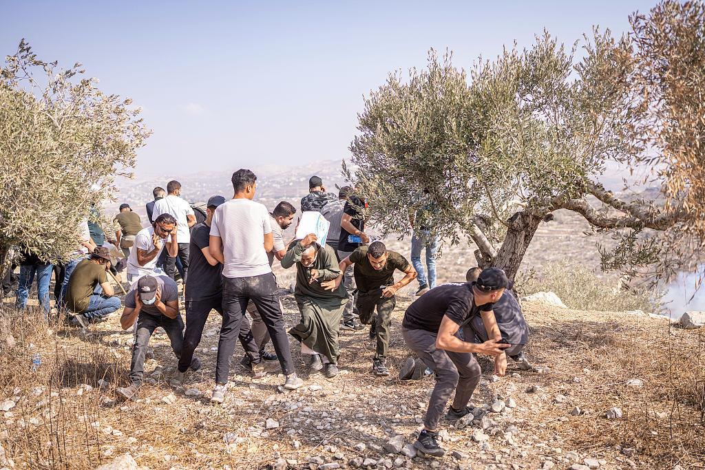 △巴勒斯坦民众和支持巴勒斯坦的外国人士在采摘橄榄时,遭到以方袭击