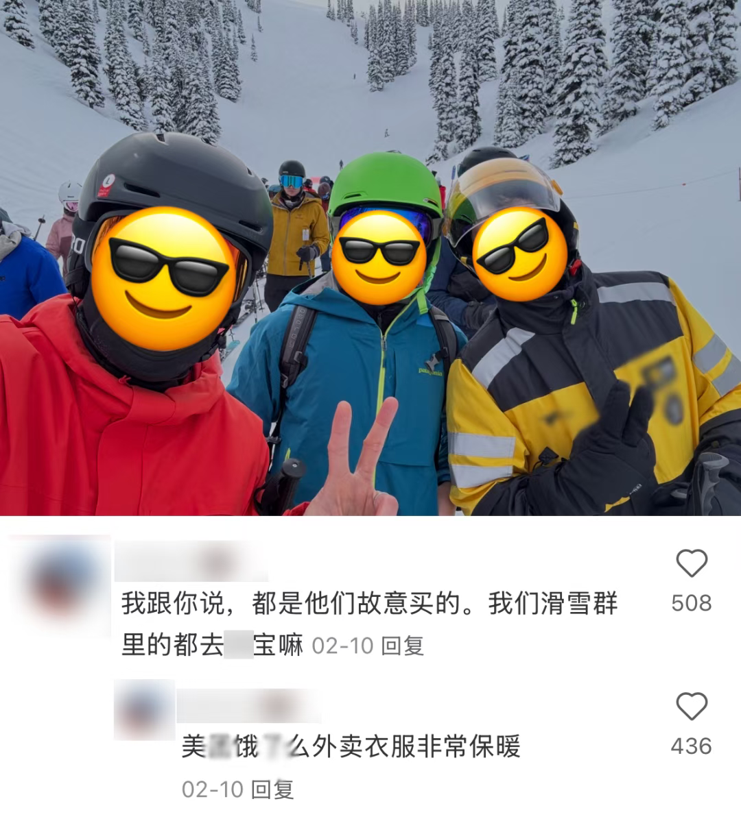 与上万的滑雪服相比,一百出头的外卖工装更是滑雪新手的天选装备。