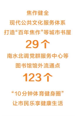 物质富裕了,精神也要丰盈。焦作健全现代公共文化服务体系,打造“百年焦作”等29个城市书屋和南水北调党群服务中心等123个图书馆馆外流通点,“10分钟体育健身圈”让市民乐享健康生活。全市人均体育场地面积达2.76平方米,位居全省前列,经常参加体育锻炼人数比例达到43.5%。