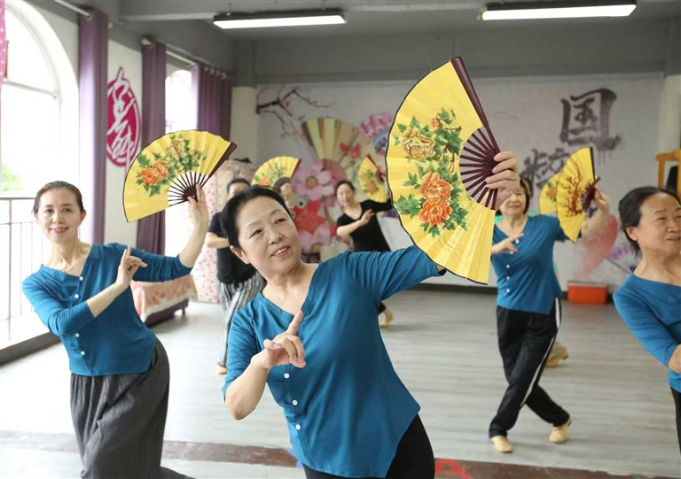焦作市解放区王褚街道锦祥花园社区党群服务中心,居民在舞蹈室里排练舞蹈,乐享生活。 王梦梦 摄