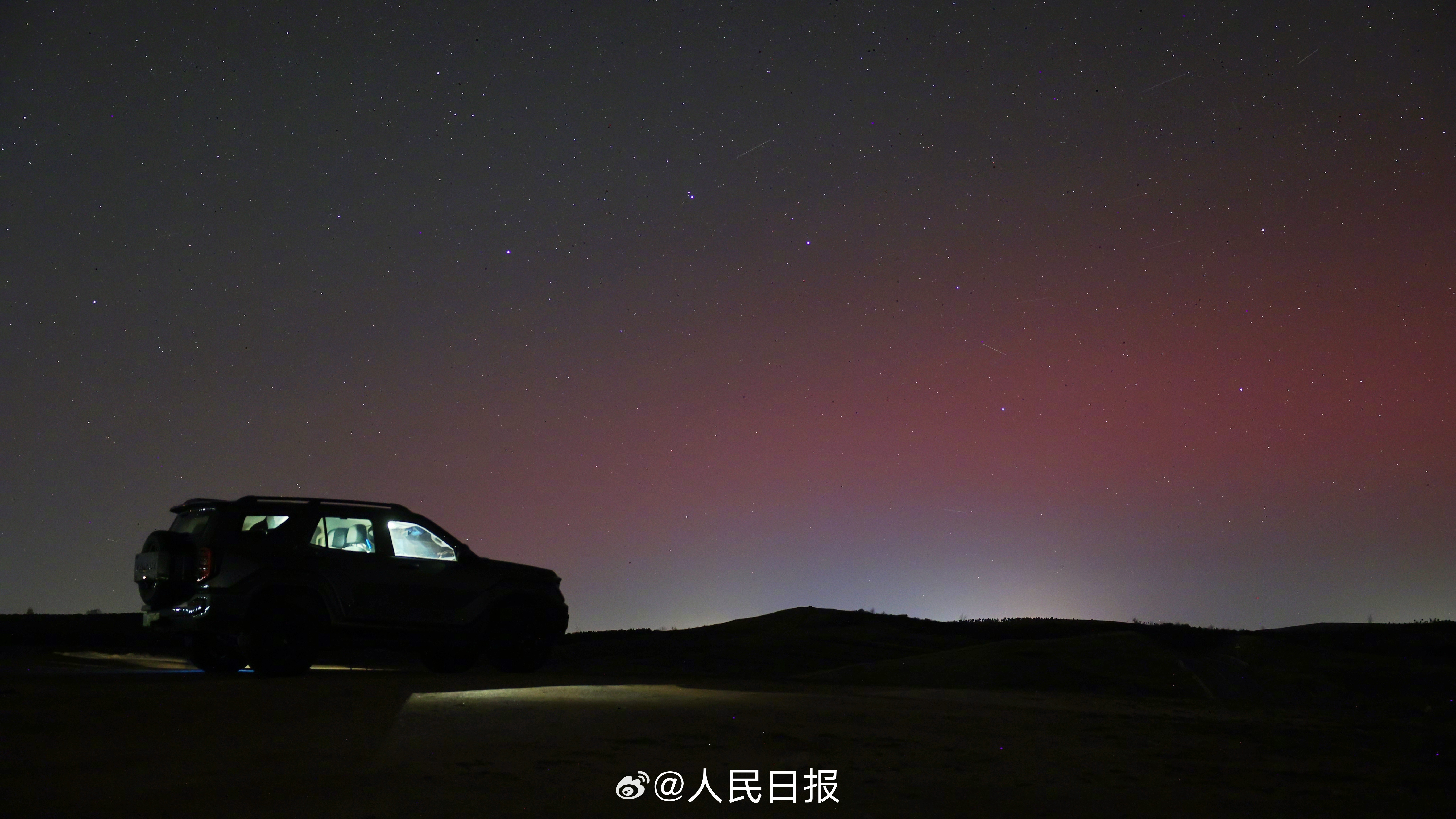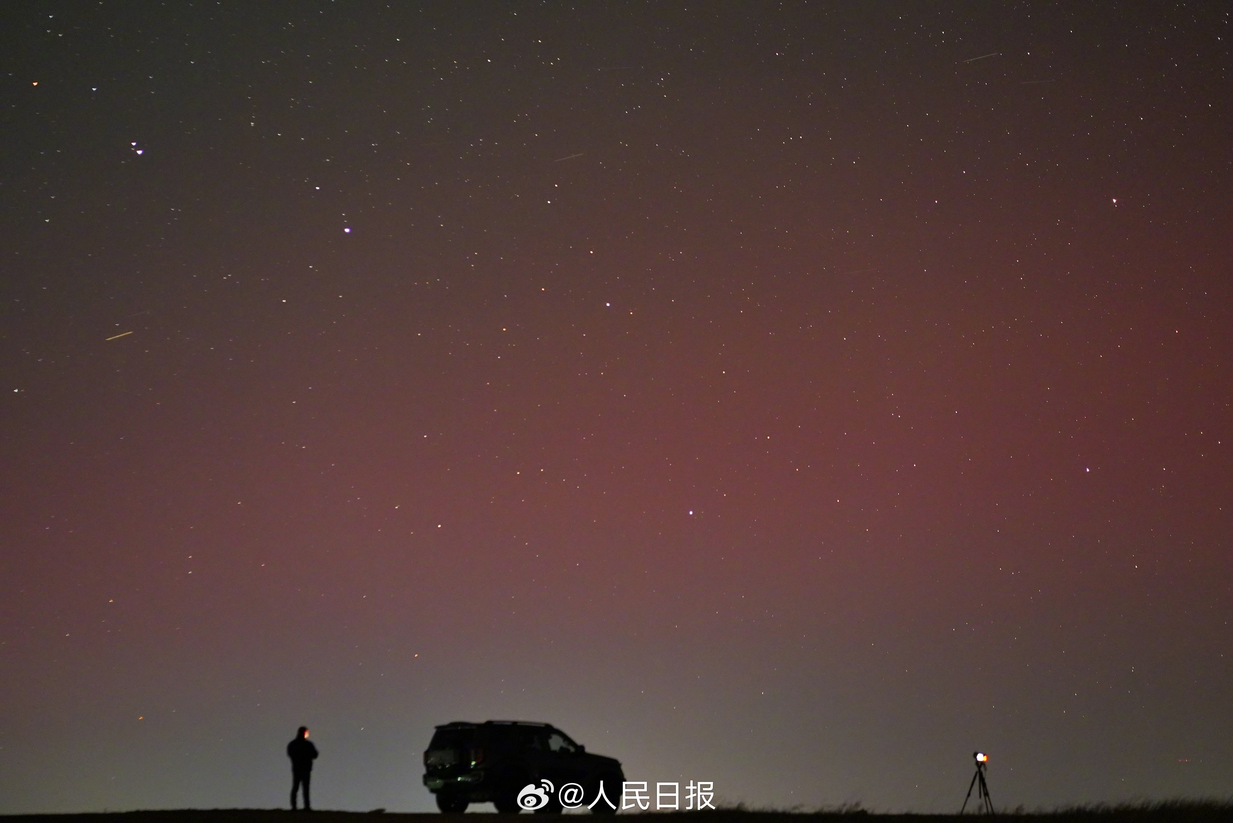 今晚7时许,北京怀柔长哨营满族乡北部的极光影像↓↓难能可贵的是,这次的极光用肉眼就可以看到,是淡淡的粉色和淡淡的绿色。(摄影:白继开)