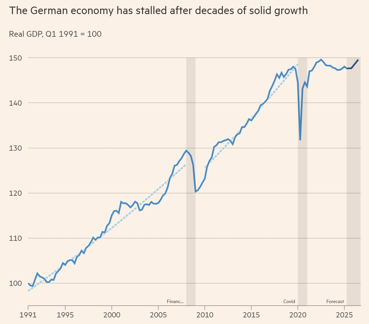 在经历了数十年的稳健增长之后,德国经济如今已陷入停滞状态。