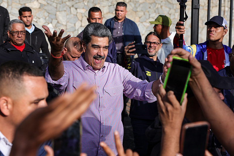 当地时间2025年11月13日,委内瑞拉加拉加斯,委内瑞拉总统尼古拉斯·马杜罗在一次亲政府青年集会上向支持者致意。