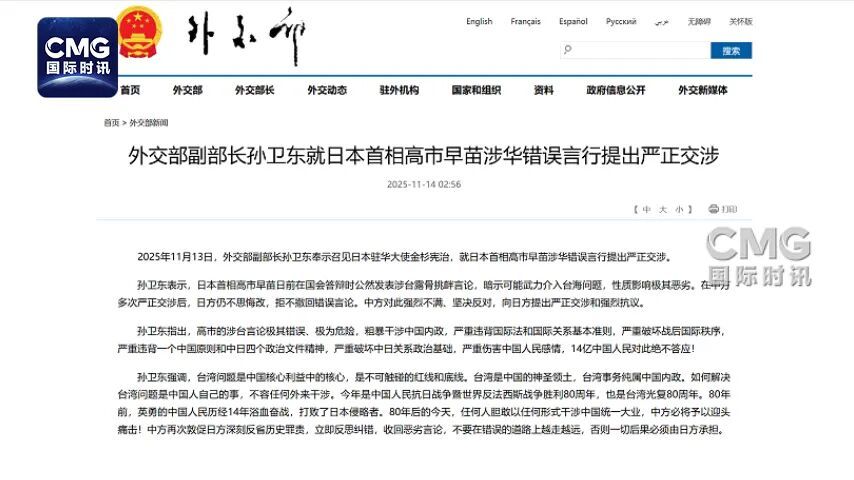 她日前在台湾问题上大放厥词,甚至暗示日本可能武力介入台海,这是日本战败以来,日本在任领导人首次在台湾问题上表达试图武装介入的野心,引发了中国外交部强烈抗议,并因此召见了日本驻华大使。
