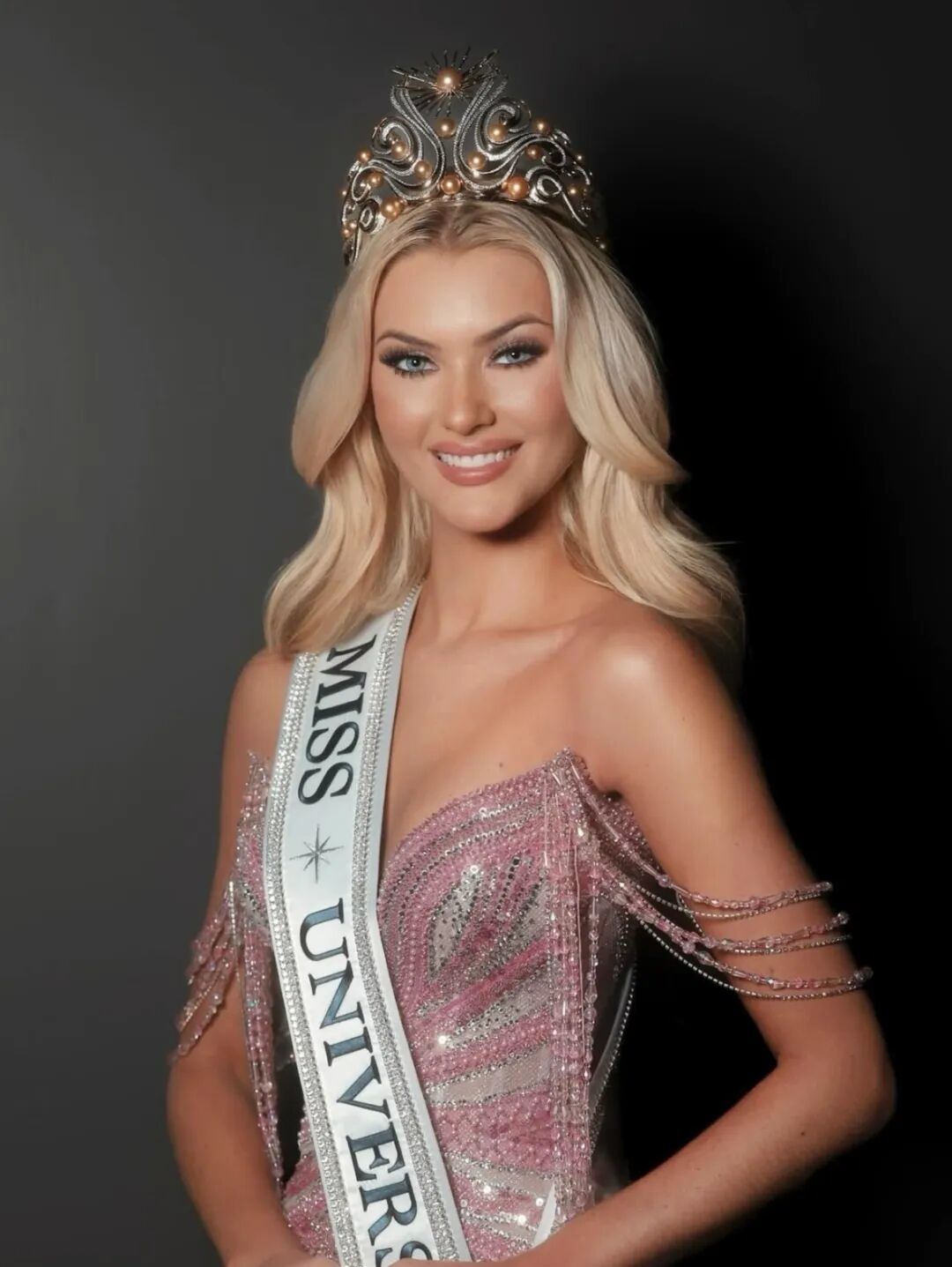 她来自丹麦,是去年的环球小姐的总冠军,也是20年来首位获得该赛事冠军的金发选手。