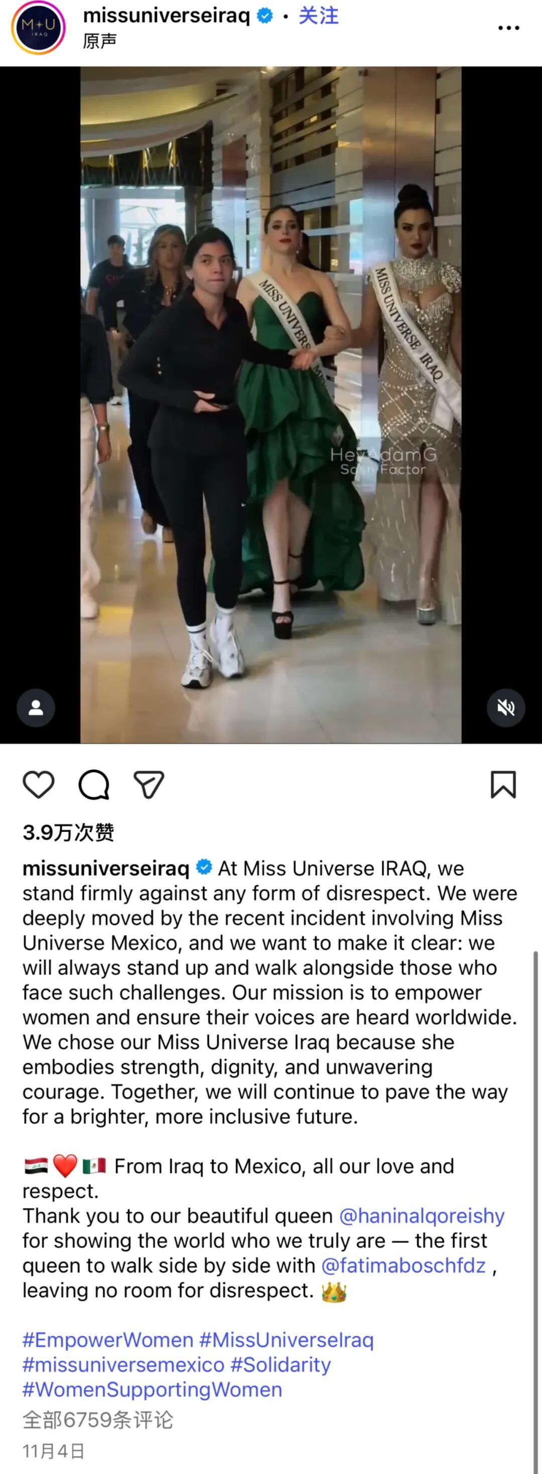 伊拉克环球小姐组织也发表声明,表示“坚定地反对任何形式的不尊重”。