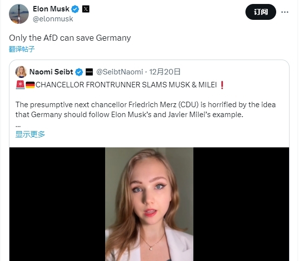而当德媒质问她为何执着于在德国倡导“言论自由”时,卢纳则辩称,自己有能力提供帮助。她还提到,自己的好友查理·柯克就是因为“说出真相”而失去了生命,“从那以后我就告诉自己:如果我能做些什么,我一定会去做。”