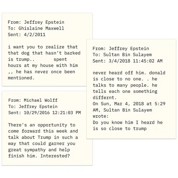 该委员会民主党人公布的数封邮件中,爱泼斯坦指认特朗普对其性犯罪知情,且曾与爱泼斯坦案关键证人及受害者之一弗吉尼娅·朱弗雷“共度数小时”。共和党人作为“对冲”公布的2万多页文件则显示,爱泼斯坦与前财政部长拉里·萨默斯和白宫前法律顾问凯瑟琳·鲁姆勒等曾供职于民主党政府的官员通信,爱泼斯坦言语中曾多次贬低特朗普,又多次提及克林顿。
