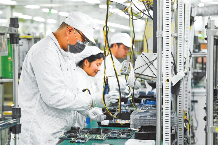 超聚变生产线旁,工人正在忙碌。