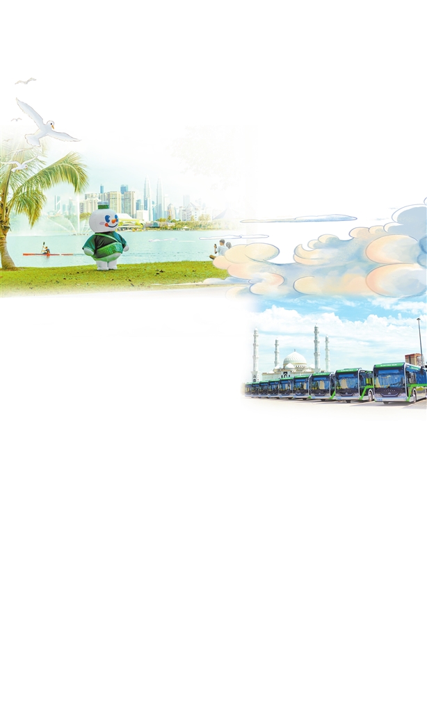 在马来西亚身穿当地特色服饰的雪王。宇通纯电动公交车交付哈萨克斯坦。