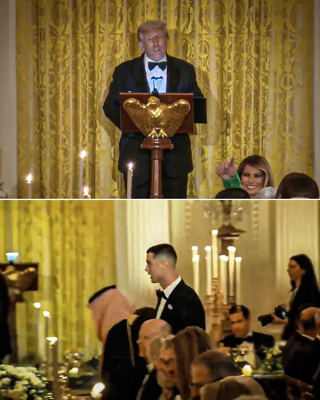 美国有线电视新闻网(CNN)报道,当地时间周二晚上,众多贵宾齐聚白宫东厅,参加为欢迎沙特王储穆罕默德·本·萨勒曼访问宾夕法尼亚大道1600号而举行的盛大晚宴。