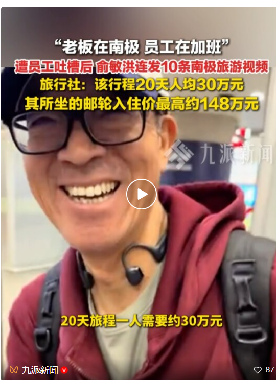 日前,新东方迎来成立32周年纪念日,身处南极的俞敏洪给员工发内部信,信中5次提及南极。不少员工看到后对此吐槽“你在南极看企鹅,我在工位当牛马”。