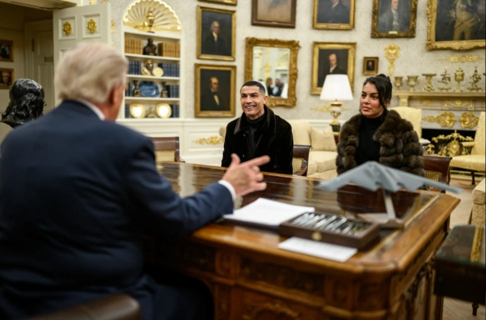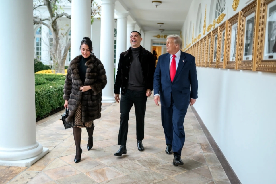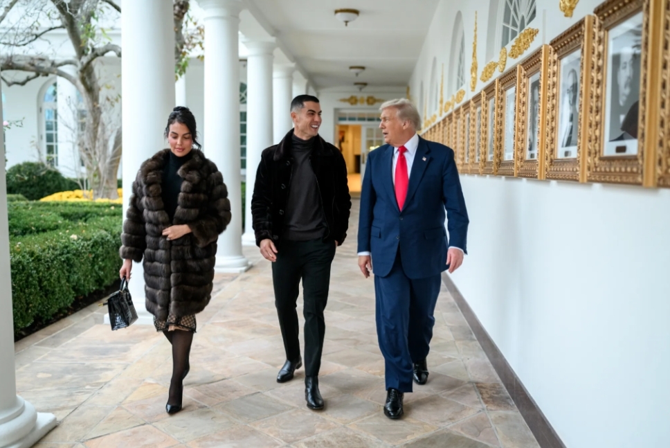 白宫网站11月19日发布了足球巨星C罗和未婚妻乔治娜·罗德里格斯(Georgina Rodríguez)访问白宫的照片,C罗和特朗普相谈甚欢。