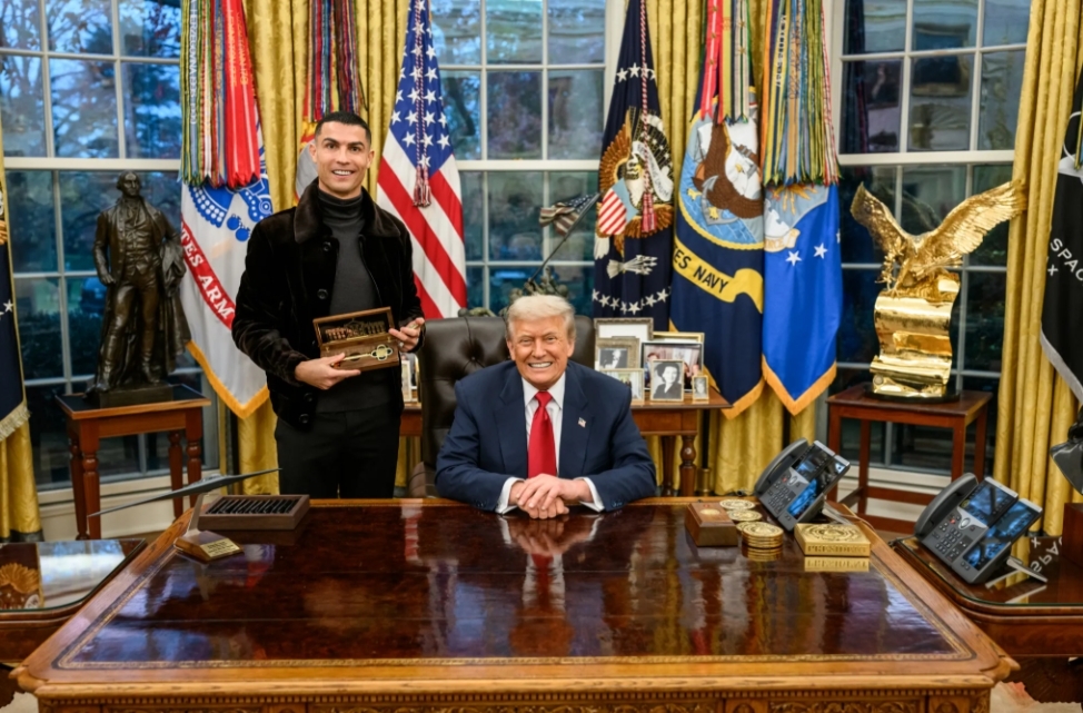 11月18日晚,C罗还现身白宫晚宴。特朗普当时在台上发表演讲说:“你知道,我儿子是罗纳尔多的铁杆粉丝,无论罗纳尔多在哪里,他都会去看他。”