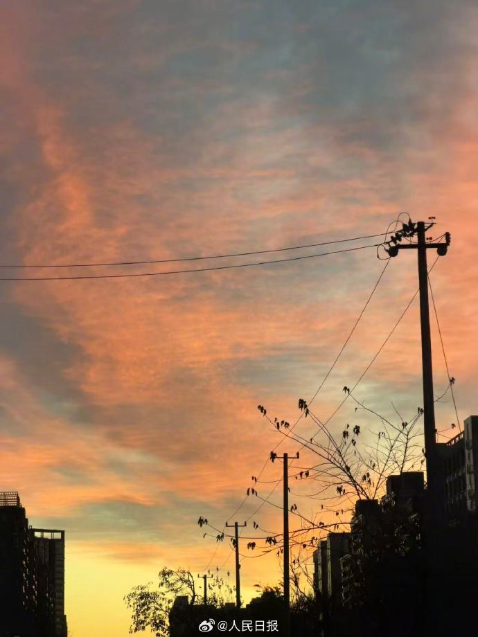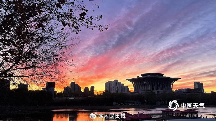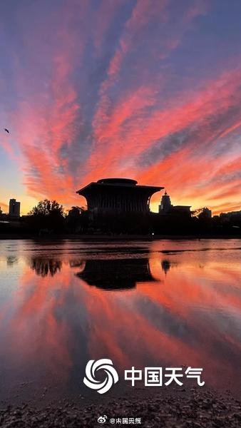 今天清晨,北京的天空迎来一场艳丽朝霞。(部分图源中国天气 )
