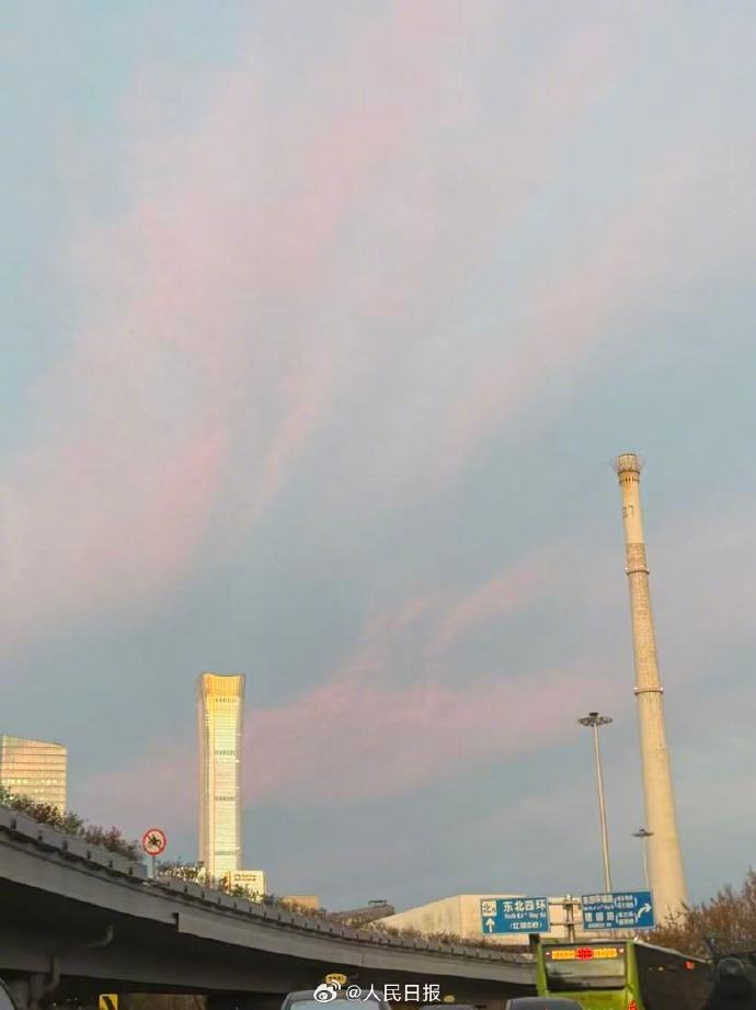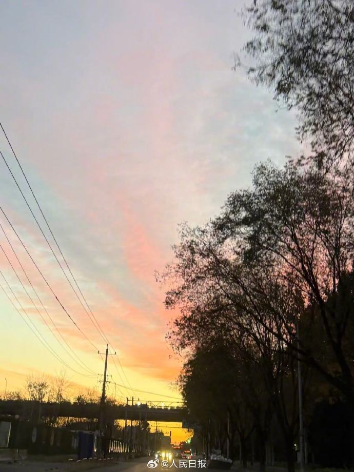 惊艳!北京清晨现橘粉色朝霞