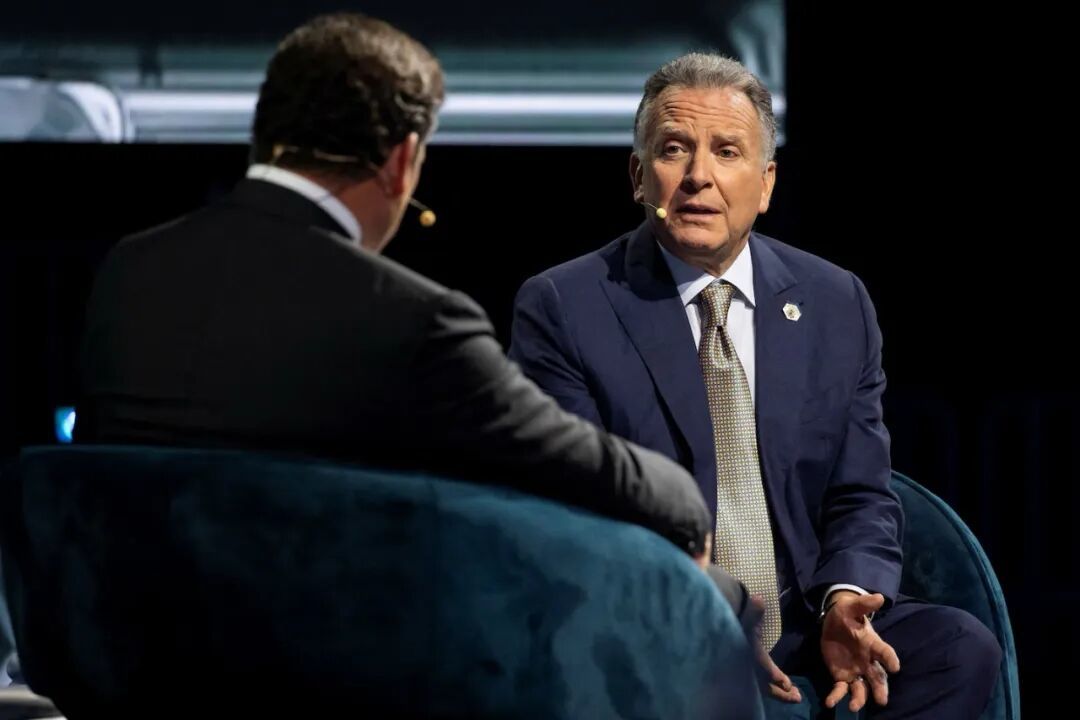 ▲本月在迈阿密举行的一场活动中,威特科夫与福克斯新闻主持人拜尔进行了交谈。(图源:路透社)