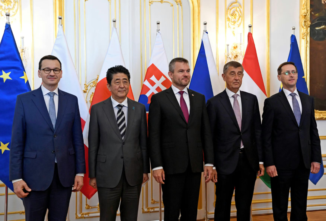 ▎2019年,时任日本首相安倍晋三(左二)与V4的国家领导人合影留念。(图源:路透社)