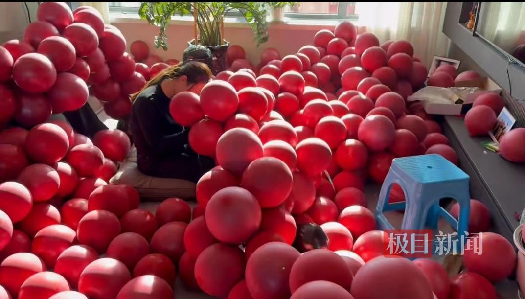 新郎的好友张先生告诉极目新闻记者,他11月18日从成都赶到赤峰,当天就开始帮新郎吹气球。“一开始以为从15楼到1楼,只要五六百个就够了,没想到新郎买了4000个,我们30个朋友足足吹了3天才吹完。”张先生说,虽然吹得很累,但这样的婚礼布置情绪价值满满,“不仅给足新人情绪价值,小区居民也因此情绪价值拉满,非常值得!”