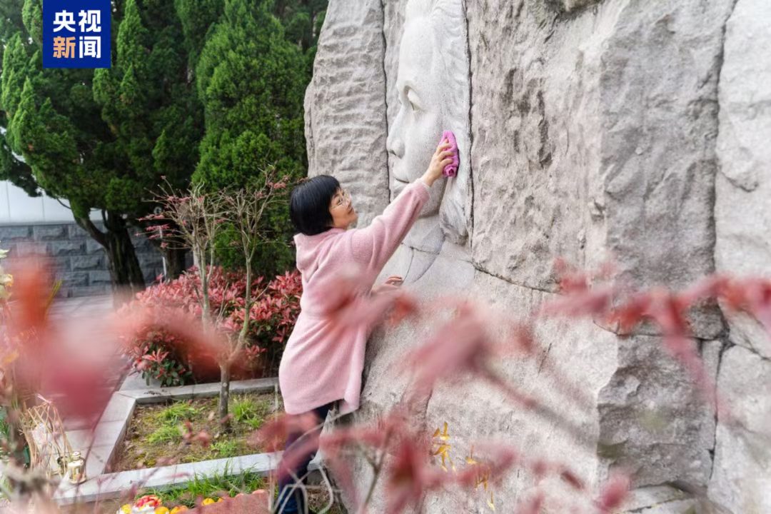 △2016年4月3日,镇海革命烈士陵园,朱枫的儿子朱明和孙子朱则安。