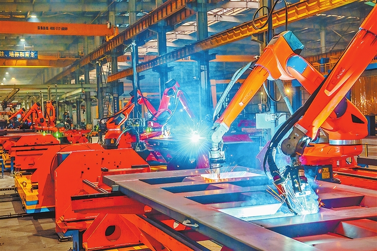 骏通车辆自动化焊接车间。 本版图片均为杜杰 摄
